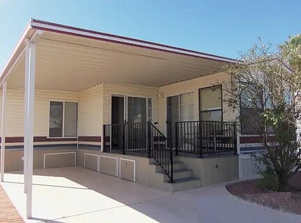 A beautiful park model in top rated Carriage Manor RV Resort, available January 1 to March 31, 2026. The park model is fully furnished with a queen size bed, four recliners and two smart televisions. The AZ room includes a sofa sleeper, stack washer and dryer in addition to a 3/4 bath. The kitchen is fully stocked with pots, pans, dishes, utensils and an outdoor BBQ grill. All linens, towels, paper products and cleaning supplies are provided. The monthly rent charge includes internet service, antenna TV service and the first $100.00 per month in electricity. Carriage Manor RV Resort offers a wide variety of activities and amenities. Enjoy the sunny AZ spring from this clean and comfortable 800 sq. ft. park model. The park model owner is local.