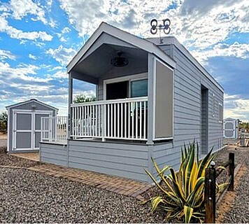 Lot D58 includes a 2024 Cavco Park Model fully furnished, WASHER DRYER ... SHOWER/TUB COMBO ... FRONT AND SIDE PORCHES ... with a LARGE PAVER PATIO with table and chairs. The lot also has an ... 8' x 14' TUFF SHED WITH ELECTRICITY for studio and separate storage areas. ***** Desert Gardens features many amenities and activities including social events, ATV rides, walking trails, pool and wood shop within this 55+ gated community.